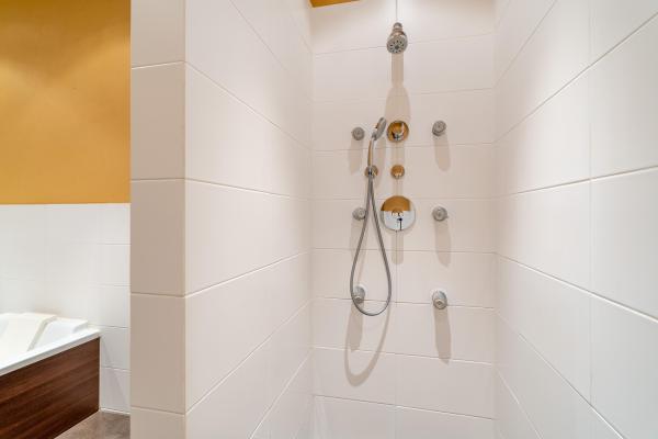 - Ligbad, Toilet, Wastafel, Wastafelmeubel, Inloopdouche, Vloerverwarming, Douche
