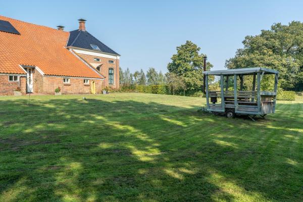 Deze prachtige, ruime herenboerderij is een van de oudste in de regio Westerwolde en ligt op een royaal perceel van ruim 8000 m². Het woonhuis werd in 1870 gebouwd en is de afgelopen jaren met veel zorg volledig gerenoveerd in een stijl die de historische charme behoudt, maar wel voorzien is van moderne materialen, duurzame maatregelen, luxe en comfort. Het imposante voorhuis heeft hoge, ruime kamers en is volledig ingericht met een Frans stijlinterieur, ontworpen door een binnenhuisarchitect en gerealiseerd door een meubelmaker. Op de voormalige graanzolder (ca. 130 m²) is een stijlvolle loft gecreëerd met een eigen ingang. Deze loft kan eventueel nog worden uitgebreid met 2 of 3 grote woonruimtes. De begane grond bevat tevens nog een multifunctionele ruimte die uitermate geschikt is als praktijk- of kantoorruimte. Het inpandige schuurdeel van ongeveer 380 m² biedt een prachtig zicht op de historische gebinten en de houten dakconstructie, die volledig is vernieuwd. Daarnaast beschikt het over verschillende zolders die zwaar belast kunnen worden. Dankzij de ruime en praktische indeling, gecombineerd met twee aparte woongedeeltes, is deze boerderij geschikt voor diverse doeleinden. Denk hierbij aan dubbele bewoning, inwoning, het runnen van een bed & breakfast, of het houden van een kantoor- of praktijkruimte aan huis.