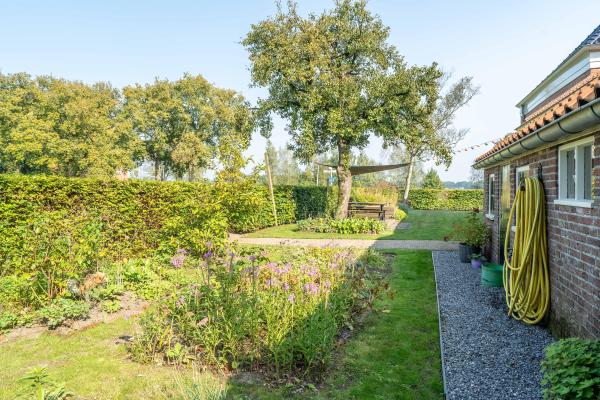 Rondom het huis staat een mooie beukenhaag die voor privacy op het erf zorgt. Langs het pad naar de keuken ligt een sfeervolle kloostertuin vol kleur en kruiden. Aan de andere kant van het huis vindt u een prachtige siertuin met een zonnig terras. Voor het huis kijkt u uit over het weiland dat perfect geschikt voor paarden of andere dieren. Door de hogere ligging van de boerderij heeft u een schitterend uitzicht over de omliggende landerijen en privacy binnen. De tuinen van de boerderij lopen moeiteloos over in de prachtige natuur van het Westerwoldegebied, met onder andere het Oude Kerkpad dat wordt omzoomd door eeuwenoude eiken en een volwassen bomenwal die de tuinen scheidt van het akkerland. Huis ter Maarsch ligt op een zandrug van de Hondsrug, ongeveer 5 meter boven NAP.