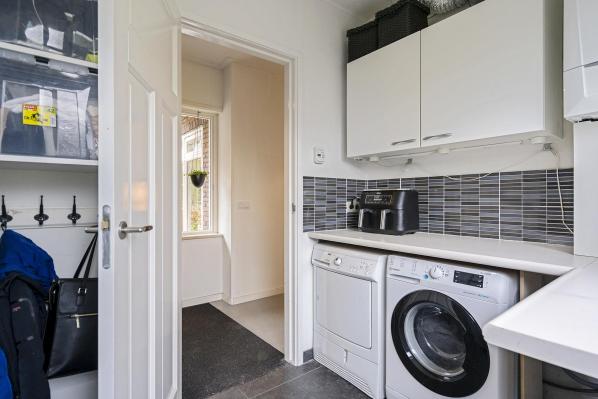 Entree/hal, toilet met fonteintje, gezellige woonkamer met erker en houtkachel. moderne open keuken voorzien van diverse inbouwapparatuur, bijkeuken met witgoedaansluiting, moderne badkamer met douche en wastafelmeubel met 2 kranen.