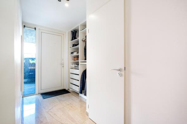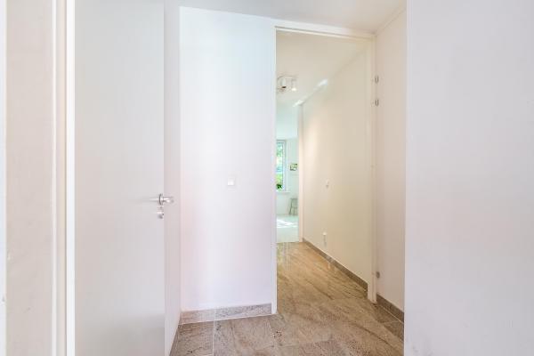 Entree/hal met trapopgang, wandcloset met fonteintje, werkkamer, pantry, bijkeuken, moderne badkamer met douche en wandcloset.