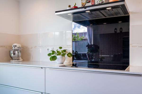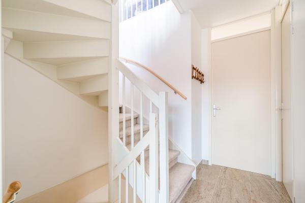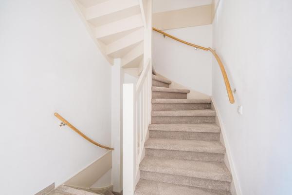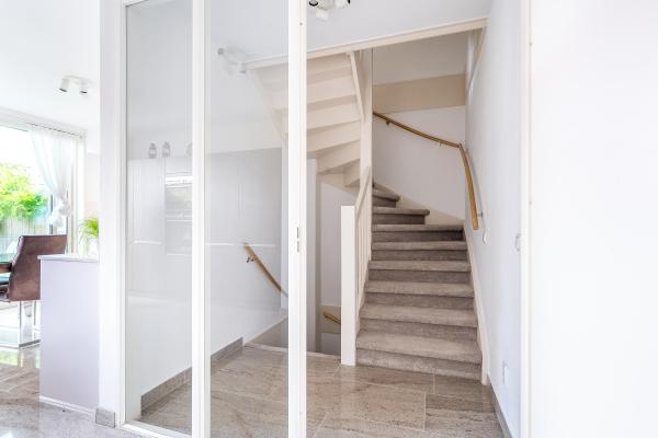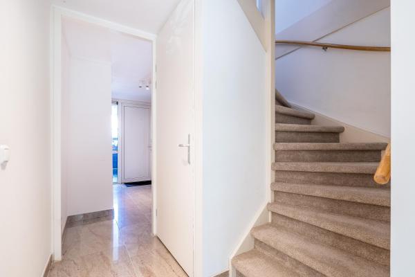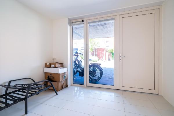 Bij binnenkomst vindt u in de hal de trapopgang en toegang tot praktische ruimtes zoals een werkkamer, een badkamer en een bijkeuken. De eerste verdieping vormt het hart van de woning: een lichte living met grote raampartijen, een luxe open keuken en een royale schuifpui naar het ruime dakterras. Hier vloeien binnen en buiten naadloos in elkaar over en kunt u volop genieten van de zon en de frisse lucht. Op de tweede verdieping bevinden zich drie slaapkamers en een moderne badkamer. De derde verdieping biedt plaats aan een vierde, ruime slaapkamer. In totaal beschikt de woning dus over vier slaapkamers, wat het ideaal maakt voor gezinnen of stellen die van ruimte houden. De begane grond biedt bovendien mogelijkheden: met een kleine verbouwing kunt u hier een extra werkkamer creëren. Dankzij de aanwezige pantry is deze verdieping ook bijzonder geschikt voor een praktijk of kantoor aan huis. De achterzijde van de woning is praktisch en comfortabel: u kunt er twee auto’s beschut parkeren op eigen terrein.