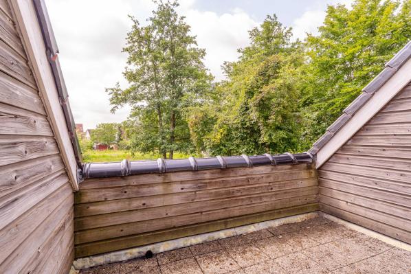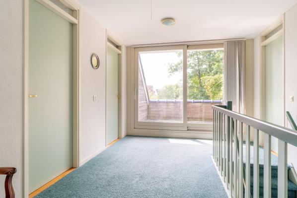 Ruime overloop met toegang naar het balkon, 3 volwaardige slaapkamers, waarvan een met inloopkast, 2e badkamer met douche, ligbad, dubbele wastafel en toilet, bergruimte met cv-opstelling.
