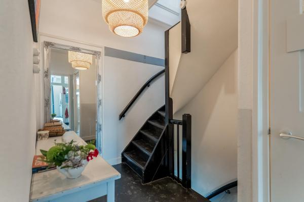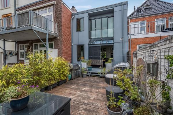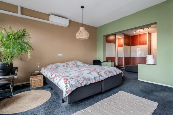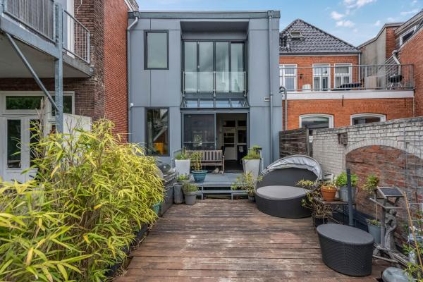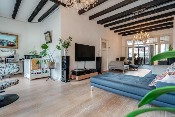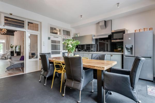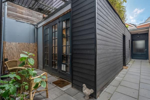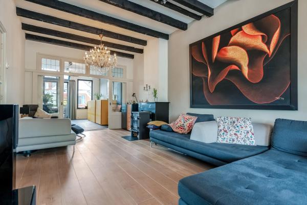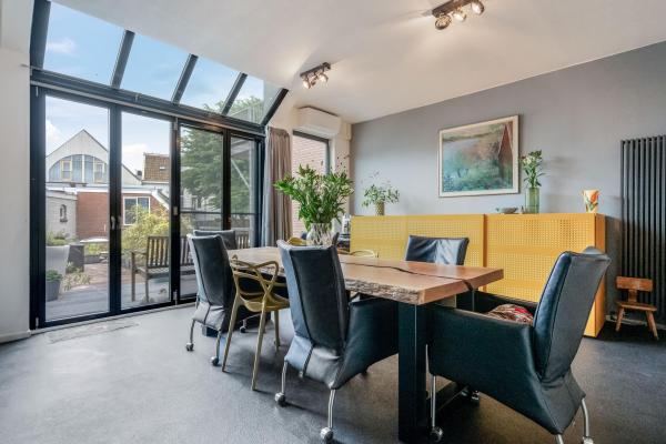 Bij binnenkomst via de opgang wordt u meteen verrast door de sfeer: een ruime en lichte woonkamer met klassieke erker, twee originele schouwen (waarvan één met houtkachel), en een authentiek balkenplafond zorgen voor een warme en karaktervolle uitstraling. Via de schuifdeuren bereikt u de gezellige woonkeuken, die niet alleen veel ruimte biedt maar ook directe toegang heeft tot het ruime en beschutte dakterras aan de achterzijde. Op de tweede verdieping bevinden zich drie slaapkamers, waaronder een royale master bedroom met een walk-in-closet. Indien gewenst is hier met een kleine ingreep zelfs een vierde slaapkamer te realiseren. Ook vindt u hier een ruime badkamer. De begane grond biedt volop extra mogelijkheden. Zo is er een ruime inpandige garage/berging met plek voor maar liefst vier voertuigen. Daarnaast bevindt zich hier een bijgebouw met eigen voorzieningen, wat het geheel zeer veelzijdig maakt. Dit maakt de woning bij uitstek geschikt voor gezinnen, zelfstandig ondernemers of iedereen die wonen en werken comfortabel wil combineren. Ook mantelzorg of het huisvesten van een inwonend kind behoort hier moeiteloos tot de mogelijkheden.