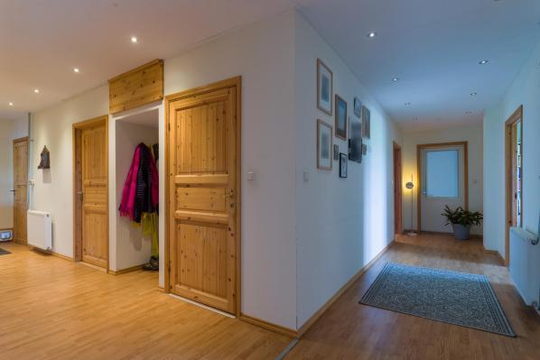 Entree/gang, slaapkamer (ca. 22 m²), open keuken met een hoekopstelling, riante en zeer lichte woonkamer (ca. 50 m²) voorzien van een houtgestookte cv en openslaande deuren naar het terras, slaapkamer (ca. 25 m²) met eigen badkamer (ca. 6 m²) voorzien van een douche en vaste wastafel, badkamer welke bereikbaar is vanuit de hal en is voorzien van een ligbad, een wandcloset en wastafel, slaapkamer (ca. 22 m²), slaapkamer (ca. 22 m²), gang, relaxroom (ca. 9 m²) voorzien van een sauna, separaat toilet met wandcloset, urinoir en fonteintje, bijkeuken met aansluitingen voor witgoed en centraal stofzuiger systeem.