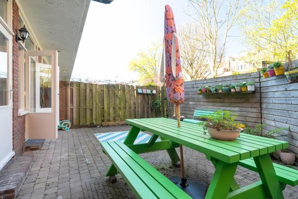Deze sfeervolle en gerenoveerde woning in jaren ’30-stijl beschikt over een lichte woonkamer met fraai uitzicht aan de voorzijde en openslaande deuren naar de achtertuin. Verder is er een open keuken in U-vorm met diverse inbouwapparatuur, twee slaapkamers en een onlangs vernieuwde badkamer (2025). Doordat de woning volledig gelijkvloers is, is de woning geschikt voor verschillende doelgroepen – van jonge gezinnen tot mensen die graag gelijkvloers willen wonen. De achtertuin is tevens bereikbaar via een achterom en biedt een fijne plek in de ochtend- en avondzon, en is er rond de middag een schaduwplek. Aan de voorzijde is een gezellige voortuin op het zuiden, perfect om in het voorjaar en zomer van de zon te genieten, mét uitzicht op de vijver!