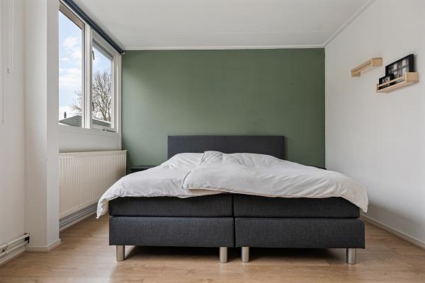 Op de verdieping bevinden zich drie ruime slaapkamers met veel natuurlijk licht. De master bedroom biedt bovendien een extra ruimte voor een comfortabele werkplek of kan eenvoudig worden omgetoverd tot een luxe walk-in closet. De moderne badkamer, volledig vernieuwd in 2020, biedt optimaal comfort met een ruime inloopdouche, wastafelmeubel met dubbele kraan en toilet.