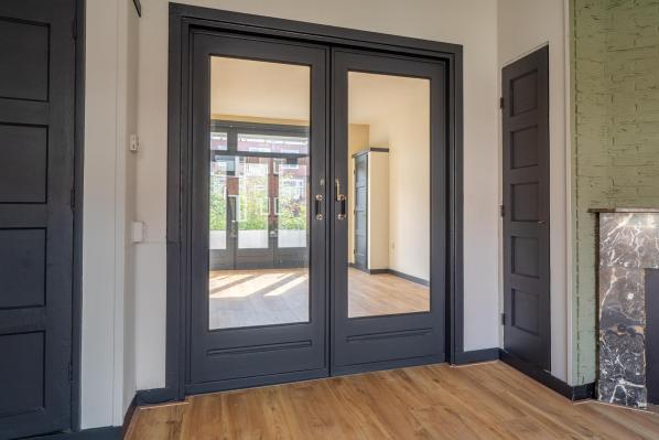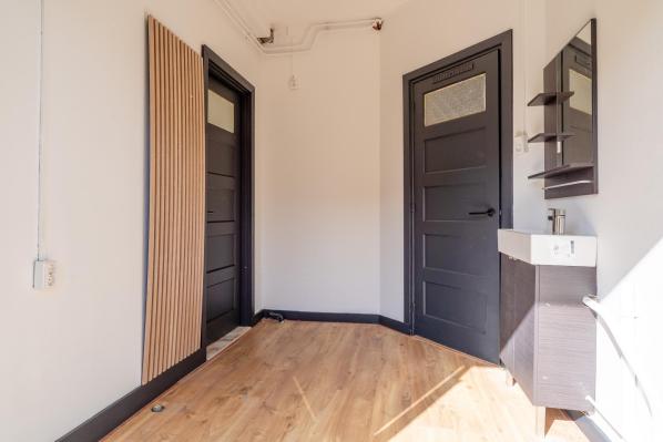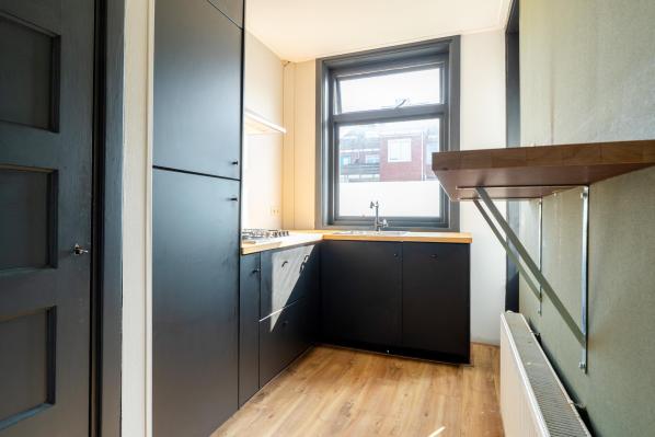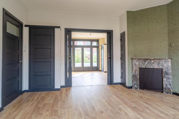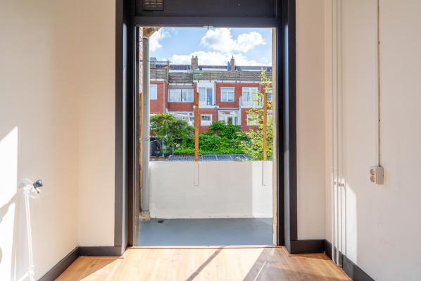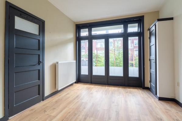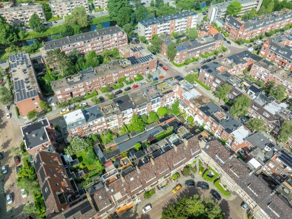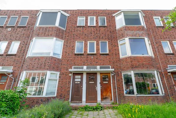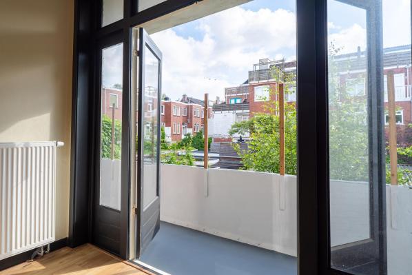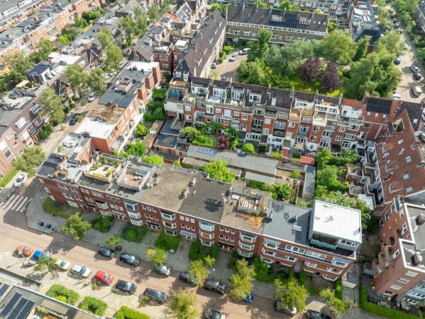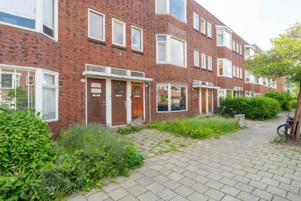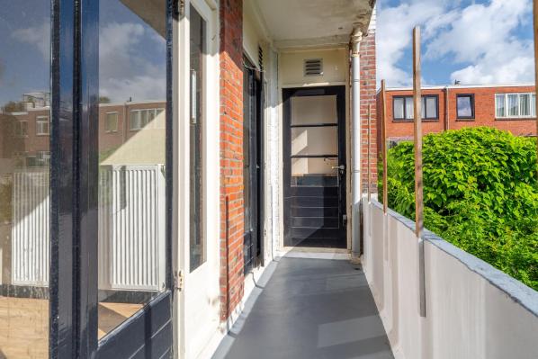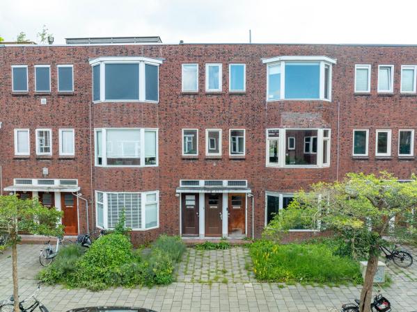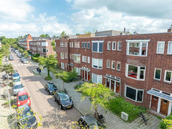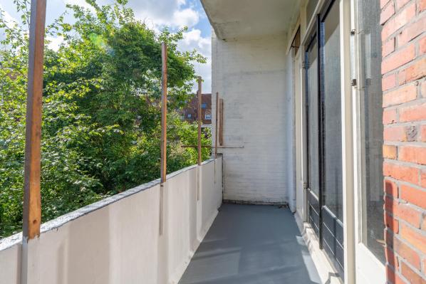 Dit 3-kamerappartement uit 1935 bevindt zich op de eerste verdieping en heeft een ruime en-suite woonkamer met een erker aan de voorzijde en authentieke schouwen. Verder beschikt het appartement over een dichte keuken, twee slaapkamers en een doucheruimte. Zowel de woonkamer als een van de slaapkamers geven toegang tot het balkon aan de achterzijde, dat op het noordoosten is gericht. Een fijne plek waar u in de ochtend koffiedrinkt in de zon en waar u op warme zomerdagen 's middags schaduw vindt. Achter het complex vindt u een houten fietsenberging, toegankelijk via een afgesloten brandgang.