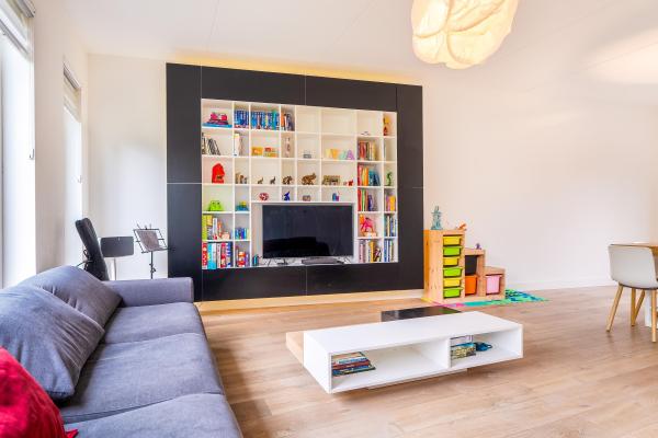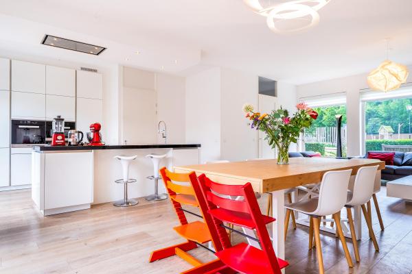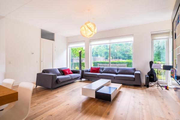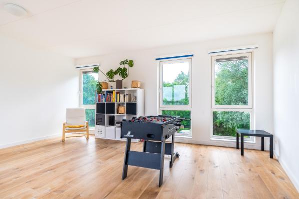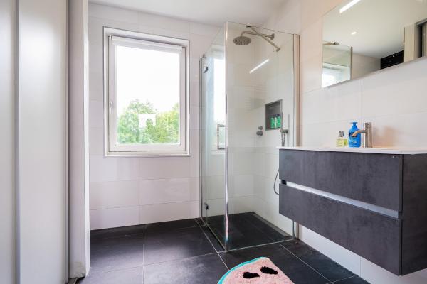 Deze moderne gezinswoning uit 2015 is met totaal ca. 189 m² ruim opgezet en heeft energielabel A+ ! De woning heeft een praktische indeling met op de begane grond een royale en lichte living met een luxe open keuken met toegang tot de achtertuin via dubbele openslaande deuren. De eerste verdieping telt drie volwaardige slaapkamers en een nette badkamer. Door de toepassing van diverse vaste kasten en een luxe wand- en vloerafwerking heeft het huis een fijne en luxe woonbeleving. Op de tweede verdieping bevindt zich nog een zeer ruime vierde slaapkamer, die eenvoudig kan worden opgedeeld om een vijfde slaapkamer te creëren. Daarnaast vindt u hier een tweede badkamer én toegang tot een heerlijk riant dakterras. De zonnige achtertuin ligt op het westen en beschikt verder over een berging en een eigen parkeerplaats onder de carport. Ook de voortuin is verzorgd aangelegd en biedt een prettig uitzicht op het omliggende groen.