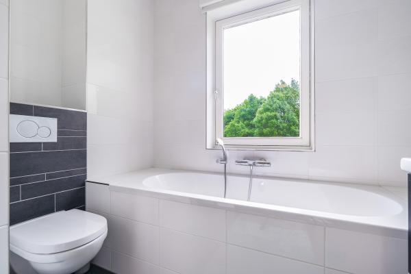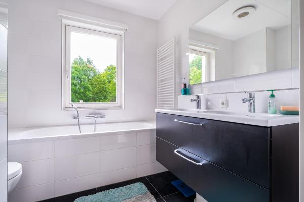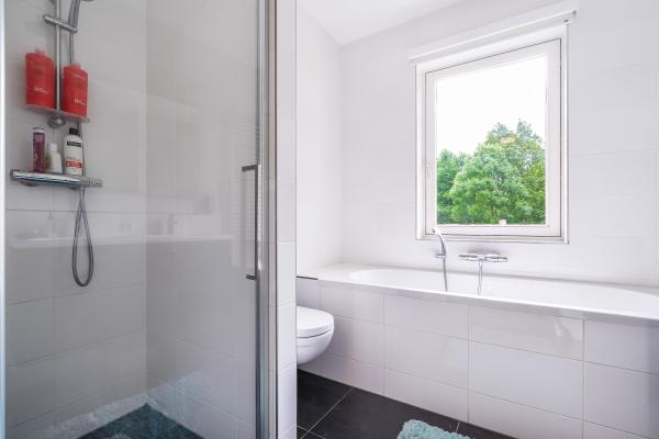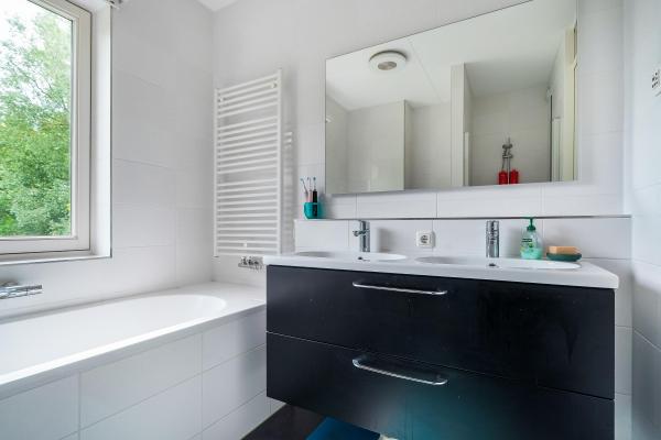 - Ligbad, Toilet, Douche, Dubbele Wastafel, Wastafel, Wasmachineaansluiting
