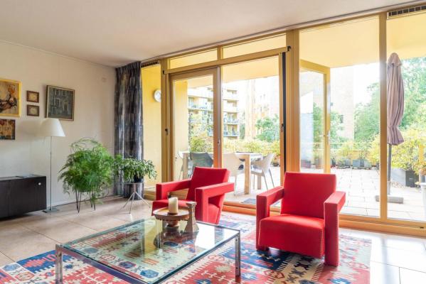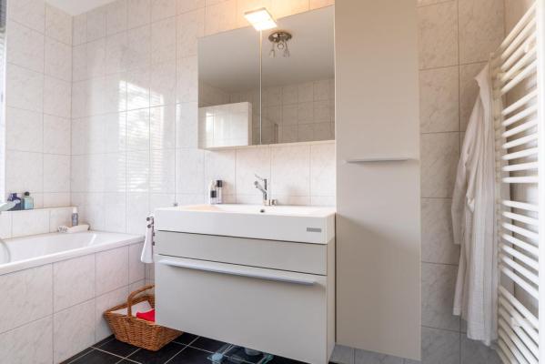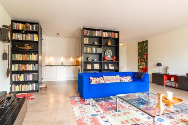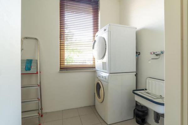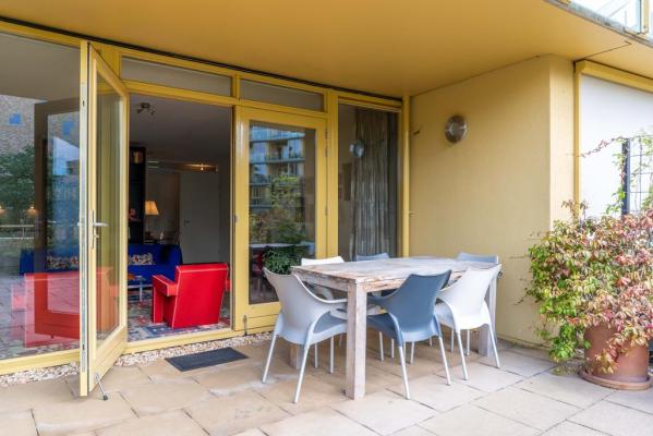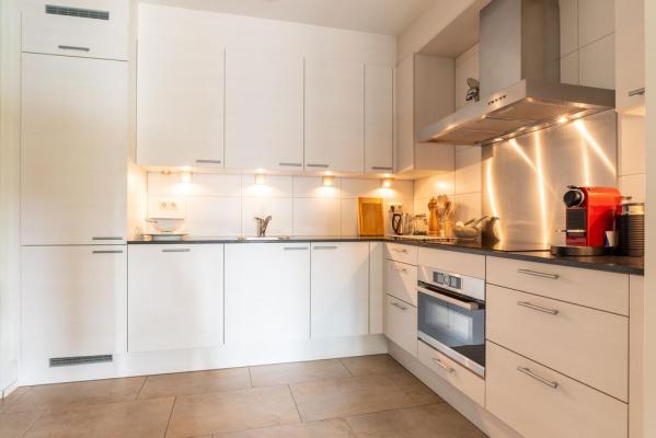 Entree/hal, wandcloset met fonteintje, ruime L-vormige woonkamer met openslaande deuren naar royaal terras en luxe open keuken voorzien van diverse inbouwapparatuur, 2 slaapkamers van ca. 19 en 12 m², badkamer met douche, ligbad, wastafelmeubel en wandcloset, bijkeuken/berging met witgoedaansluiting.