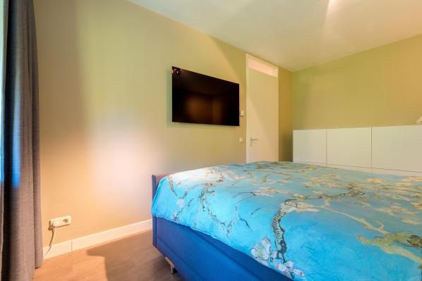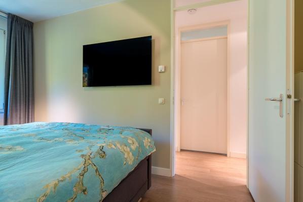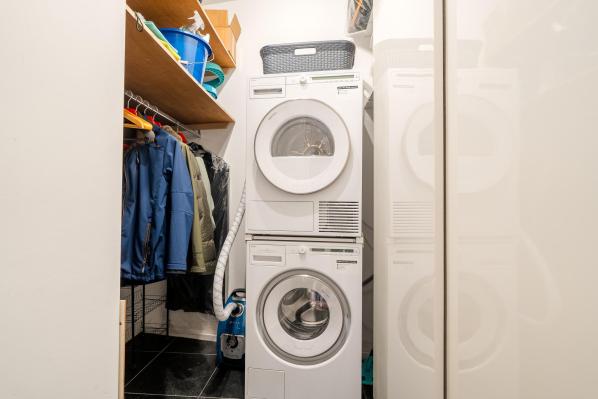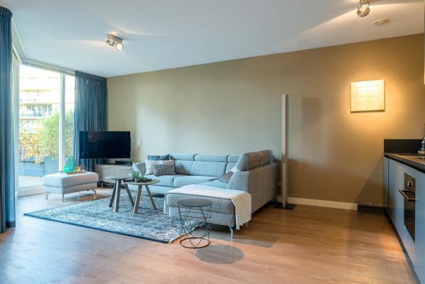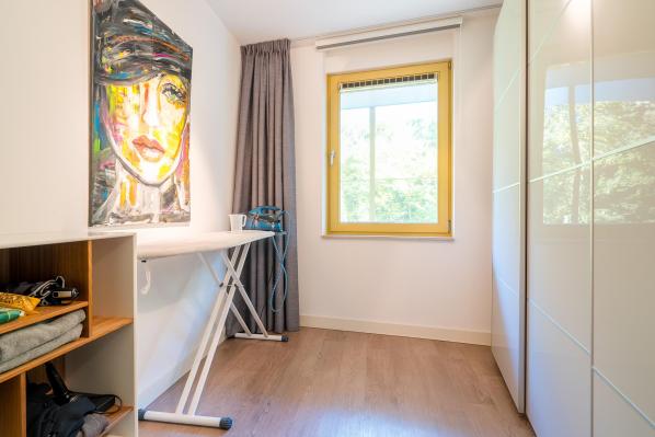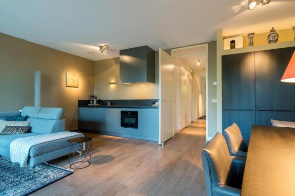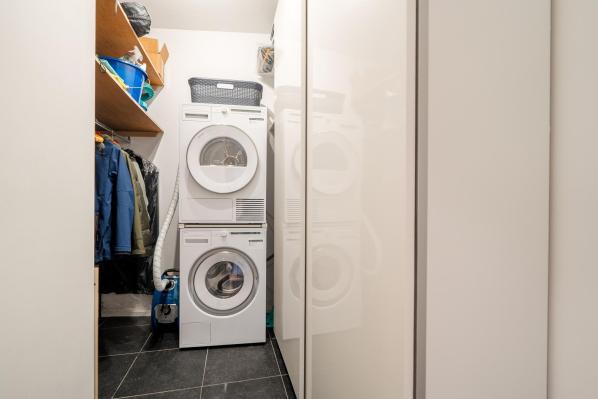 Entree/hal, wandcloset met fonteintje, ruime woonkamer met openslaande deuren naar royaal terras en luxe open keuken voorzien van diverse inbouwapparatuur, 2 slaapkamers, nette badkamer met douche en wastafel, bijkeuken/berging met witgoedaansluiting.