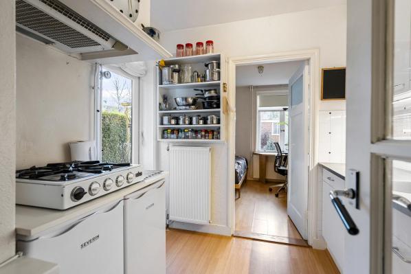 Op een prachtige, rustige en toch centrale locatie, met vrij uitzicht voor en achter en op loopafstand van het stadscentrum en twee NS-stations, bevindt zich deze charmante jaren '30 benedenwoning met een zonnige tuin op het zuidwesten en een bescheiden voortuin.Deze sfeervolle woning uit 1939 heeft een lichte grote woonkamer met houtkachel, een keuken en een slaapkamer op de begane grond. Op de bovenverdieping bevindt zich een tweede slaapkamer en een badkamer. De rustige stadstuin op het zuidenwesten is een heerlijke plek om in de zomer van de zon te genieten. Voor wie liever de schaduw opzoekt is daarvoor ook een beschut plekje te vinden. Achter in de tuin bevindt zich een eigen berging met elektriciteitsaansluiting en een praktische achterom die via een afsluitbare brandgang toegang geeft tot de straat.