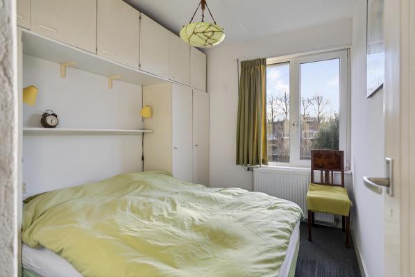 Deze sfeervolle woning uit 1939 heeft een lichte grote woonkamer met houtkachel, een keuken en een slaapkamer op de begane grond. Op de bovenverdieping bevindt zich een tweede slaapkamer en een badkamer. De rustige stadstuin op het zuidenwesten is een heerlijke plek om in de zomer van de zon te genieten. Voor wie liever de schaduw opzoekt is daarvoor ook een beschut plekje te vinden. Achter in de tuin bevindt zich een eigen berging met elektriciteitsaansluiting en een praktische achterom die via een afsluitbare brandgang toegang geeft tot de straat.