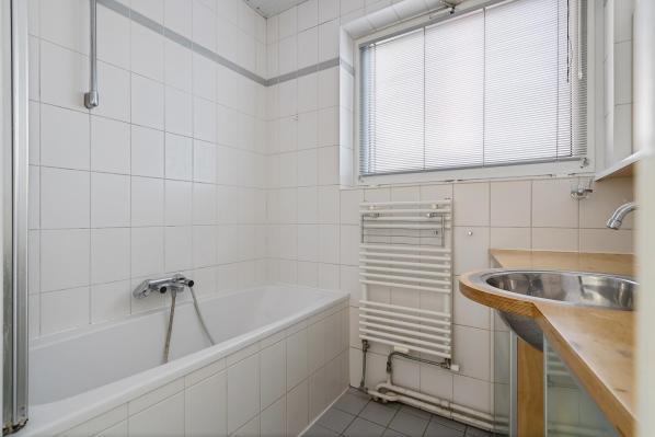 Overloop, tweede slaapkamer, badkamer met ligbad/douche en wastafel.