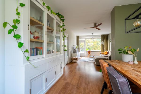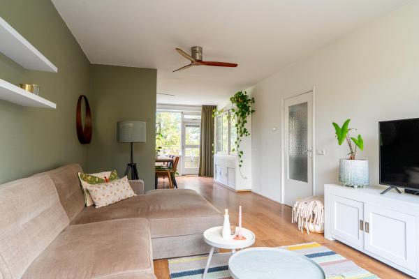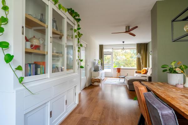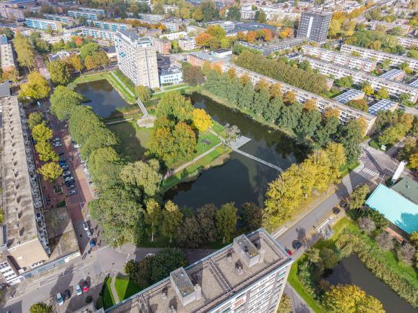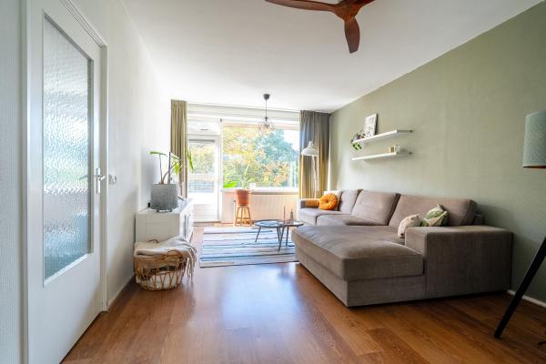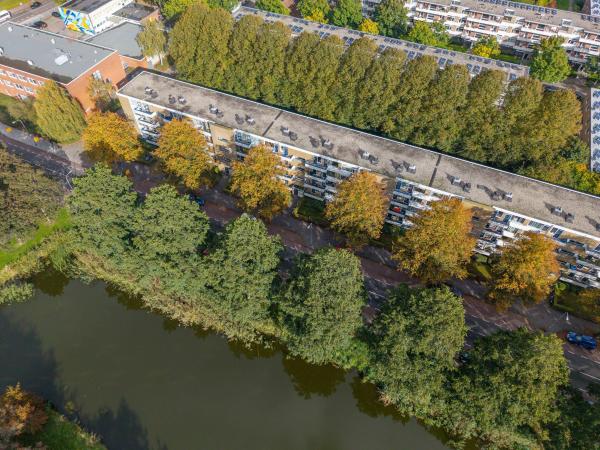 Aan de zuidkant van Groningen bevindt zich dit lichte, zonnige 3-kamerappartement met een vrij uitzicht aan zowel de voor- als achterzijde. Gelegen op de bovenste woonlaag geniet u hier van rust, privacy en een prachtig uitzicht over de Vondelvijver. Bij binnenkomst via de hal bereikt u de ruime woonkamer met een gezellige zit- en eethoek, waar de grote ramen zorgen voor een aangename lichtinval. De keuken is praktisch ingericht en biedt toegang tot de badkamer. Vanuit de hal zijn ook de twee slaapkamers bereikbaar. Zowel aan de voor- als achterzijde beschikt het appartement over een balkon: aan de achterzijde met uitzicht op het groen, en aan de voorzijde met een schitterend vergezicht over het water. Dankzij de twee balkons, aan de voor- en achterzijde, is er op ieder moment van de dag wel een plekje in de zon te vinden. In het souterrain bevindt zich bovendien een handige berging.
