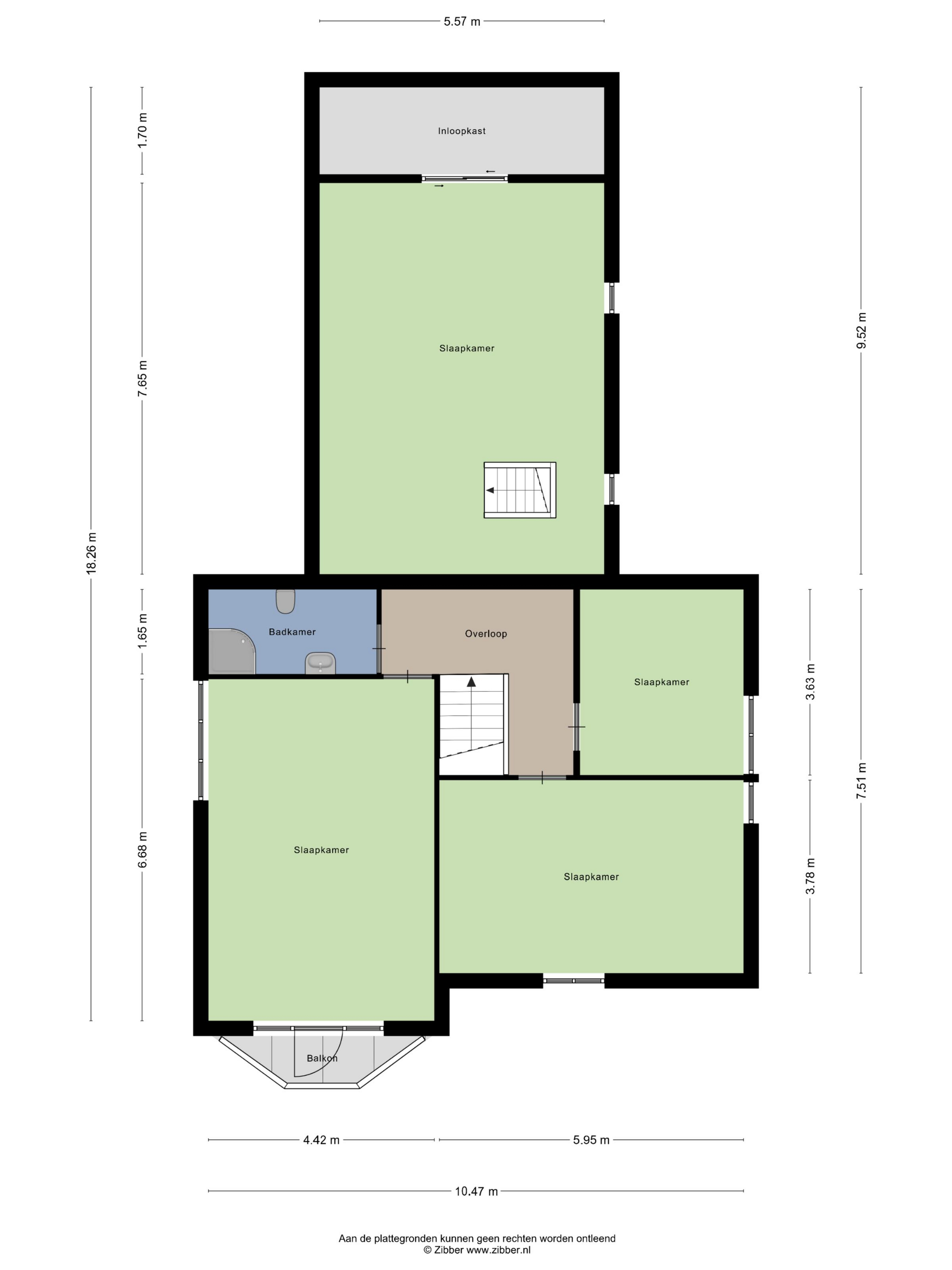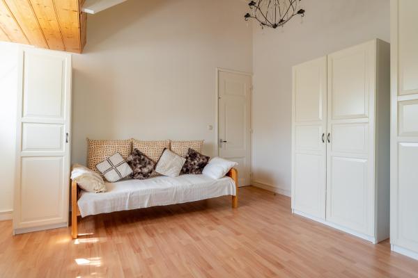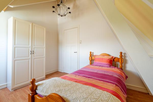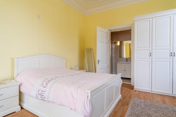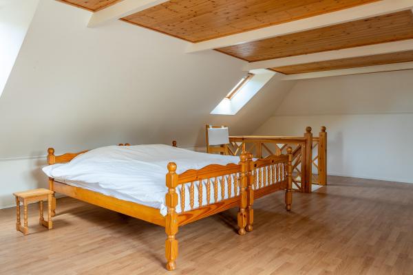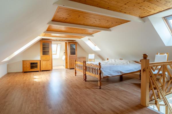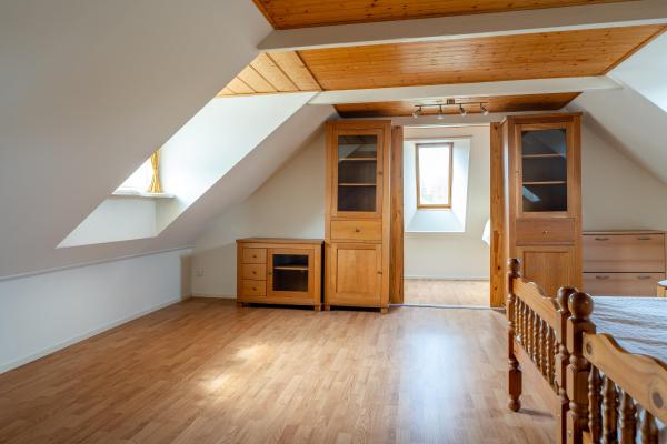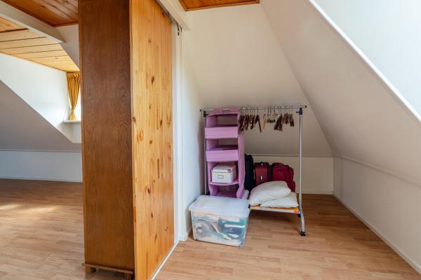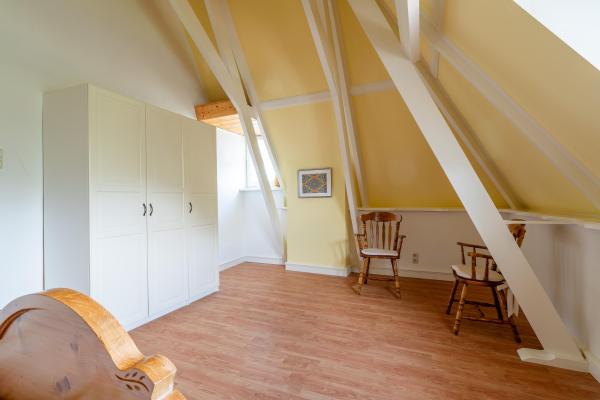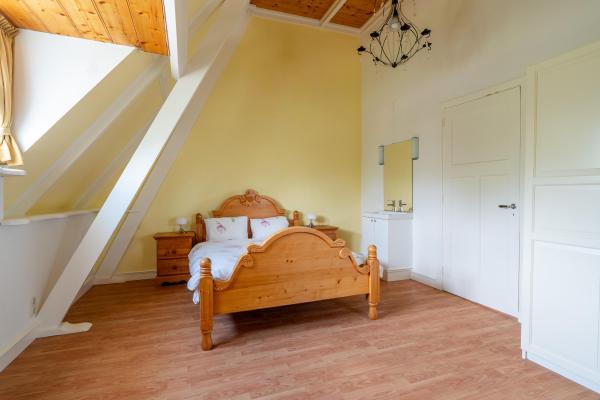 Overloop, 4 slaapkamers van ca. 42, 26, 15 en 10 m², waarvan de grootste beschikt over een aangrenzende kleedruimte en met een aparte toegang vanaf de begane grond, badkamer met wastafelmeubel en toilet.