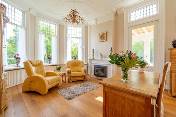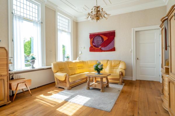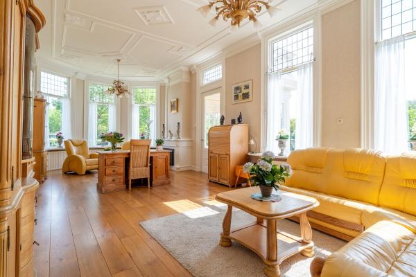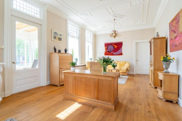 Deze sfeervolle monumentale villa uit 1895 is door de huidige eigenaren grondig gerenoveerd met behoud van de prachtige authentieke details. De fraaie geveldetails en de sierlijke hoge plafonds zorgen voor een bijzondere sfeervolle woonbeleving. Het woonhuis beschikt over een royaal woonoppervlakte ca. 300 m² verdeelt over in totaal 5 slaapkamers en 2 badkamers, waarvan één slaapkamer en badkamer is gelegen op de begane grond. Tevens is er een souterrain van ca. 100 m² voorzien van meerdere kamers waarin u een sportkamer, thuisbioscoop of wijnkelder kunt realiseren. Het riante hoekperceel van 1.830 m² is voorzien van een vrijstaande stenen garage (ca. 28 m²), een houten schuur (ca. 12 m²) en een zwembad!