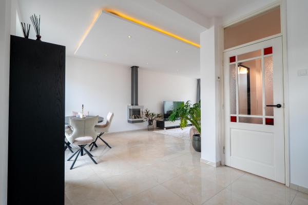 Deze aantrekkelijke gezinswoning is de afgelopen jaren op diverse punten gemoderniseerd en uitgebouwd. Er is veel aandacht besteed aan verduurzaming, met onder andere een geïsoleerde betonvloer met vloerverwarming op de begane grond en is in de uitbouw een moderne keuken geplaatst in 2024. Door de uitbouw aan de achterzijde is er een extra ruime en bijzonder prettige leefruimte op de begane grond ontstaan. De indeling is praktisch en comfortabel. Via de entree komt u in de hal met toegang tot de lichte L-vormige woonkamer met sfeervolle gashaard. Aansluitend bevindt zich de moderne keuken, die mooi aansluit bij de leefruimte. Op de eerste verdieping vindt u drie slaapkamers en een eigentijdse badkamer. Aan de achterzijde van de woning ligt een zonnige en beschutte tuin met daarachter een extra diepe garage. Daarnaast beschikt het huis over een voortuin en een ruime oprit naast de woning tot voor de garage. Hierdoor is er ruimte om meerdere auto’s op eigen terrein te parkeren. Desgewenst kan dit gedeelte ook (deels) als tuin worden ingericht.