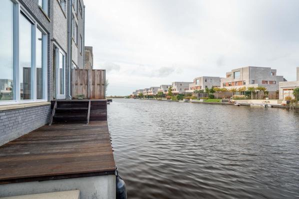 In een schitterende omgeving met een constant vakantiegevoel bevindt zich deze moderne halfvrijstaande villa met een zonnige tuin op het zuiden, vrijstaande berging en eigen aanlegsteiger.