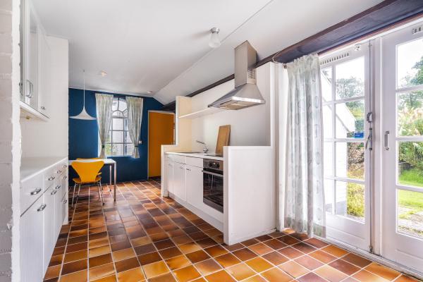 Entree/tochtportaal, toilet met fonteintje, hal met trapopgang, lichte L-vormige living met houtkachel, half-open keuken voorzien van enige inbouwapparatuur, hal, bijkeuken, 2 slaapkamers, badkamer met ligbad, wastafel en toilet, berging, royale schuur.