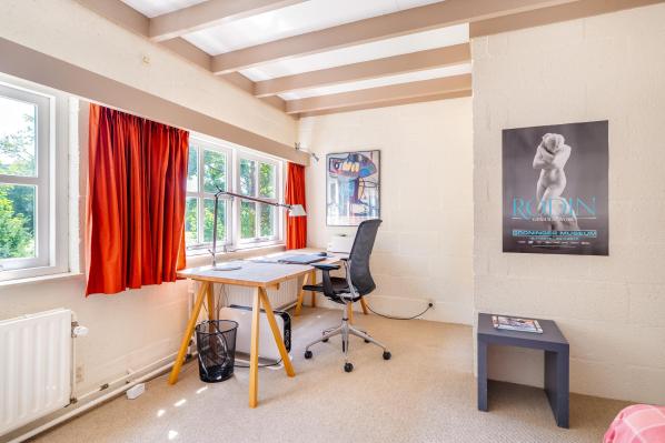 Ruime overloop met voldoende plaats voor een comfortabele werkplek, 3 slaapkamers, waarvan de master bedroom met naastgelegen moderne badkamer met douche/ligbad, dubbele wastafel, separaat toilet, 3e badkamer met douche en wastafel.