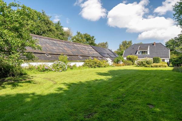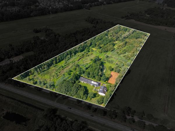 De woonboerderij, gebouwd in 1980, is de afgelopen jaren deels gemoderniseerd en verbouwd. De speelse indeling, het gebruik van warme materialen en de grote raampartijen creëren een unieke, lichte en uitnodigende woonomgeving. Bij binnenkomst via de ruime hal met vide ervaart u direct de fijne open sfeer. De royale living met houtkachel, bestaande uit een zit- en eetgedeelte, vormt het hart van het huis. De huidige werkkamer kan uitstekend dienen als aparte eetkamer en grenst, net als de woonkamer, aan de half-open keuken. Dankzij de openslaande deuren naar het terras staat de werkkamer in direct contact met de tuin. Via een tweede hal bereikt u de gang met toegang tot de bijkeuken, twee slaapkamers, een badkamer en de inpandige garage en schuur. Op de verdieping bevinden zich nog drie slaapkamers en twee badkamers. Met alle belangrijke woonvoorzieningen op de begane grond is de woning levensloopbestendig, maar door de aanwezigheid van meerdere slaapkamers en badkamers op beide niveaus is het huis ook ideaal voor gezinnen die ieder hun eigen deel van de woning willen hebben. Daarnaast leent de woning zich uitstekend voor werken aan huis. Het perceel van 37.130 m² biedt een wereld van mogelijkheden. De royale tuin is ingericht voor ontspannen buitenleven, met onder andere een eigen tennisbaan voor sportieve bewoners of gasten. Achter op het terrein bevinden zich bovendien enkele ooievaarsnesten, een bijzonder en charmant element dat elk voorjaar voor leven en natuurbeleving zorgt. Dankzij de goede zonligging geniet u de hele dag door van zon, terwijl u volledige privacy ervaart. Een eigen paradijs voor liefhebbers van ruimte, rust en natuur.