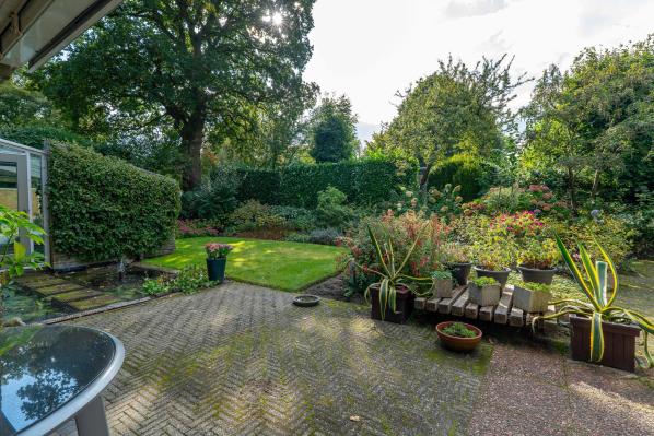 Op een fraaie locatie nabij het centrum van Haren gelegen riante bungalow met inpandige garage en aangebouwde houten berging.