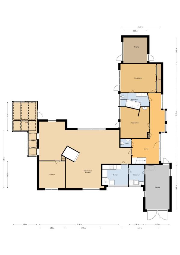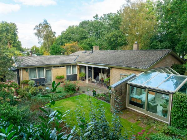 Deze vrijstaande bungalow uit de jaren '50 is de afgelopen 35 jaar met veel liefde bewoond geweest door de huidige eigenaar en is nu vrij gekomen voor de nieuwe generatie. Hoewel de bungalow wat verouderd is, biedt dit juist een geweldige kans om het geheel naar eigen smaak te moderniseren. Met bijna 190 m² aan woonoppervlak en een speelse indeling heeft de woning veel mogelijkheden. Bij binnenkomst betreedt u een ruime living met een deels hoog plafond en een gezellige open haard. Daarnaast vindt u een lichte tuinkamer, een aparte keuken, een werkkamer, twee slaapkamers en een badkamer. Door het levensloopbestendige ontwerp is deze woning ideaal voor mensen van alle leeftijden. De verzorgde tuin rondom de bungalow biedt diverse terrassen om te genieten van het buitenleven. Verder is er een oprit met plek voor meerdere auto's en een inpandige garage met vliering.