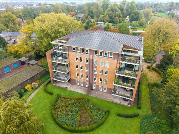 Bij binnenkomst via de ruime hal valt direct de lichte en royale living op, met een sfeervol zitgedeelte, een ruime eethoek en een nette open keuken. Vanuit de woonkamer heeft u toegang tot maar liefst twee balkons, waar u heerlijk kunt genieten van de zon en het vrije uitzicht. Aan de voorzijde op het park en aan de achterzijde op de fraai aangelegde gemeenschappelijke tuin. Het appartement beschikt over twee slaapkamers, waarvan de master bedroom is voorzien van een inloopkast en een ruime eigen badkamer. Daarnaast is er een tweede (gasten)badkamer. Ideaal voor logees of bezoek. Een aparte werkhoek maakt het appartement ook perfect voor thuiswerken. Bij het appartement hoort een ruime garage op het afgesloten binnenplein, ideaal voor uw auto of extra opslag. Het gebouw zelf straalt stijl en klasse uit dankzij de verfijnde architectuur en zorgvuldige detaillering. De prachtige, onder architectuur aangelegde tuin vormt de groene omlijsting van dit bijzondere geheel.
