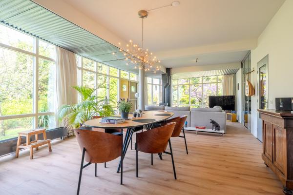 Architectonisch vormgegeven vrijstaande split-level villa met verrassend veel ruimte en een prachtige groene tuin in Zuidlaren.