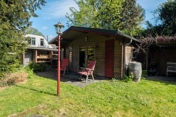 Bij binnenkomst ervaart u direct de ruimtelijkheid en het karakter van de woning. De hoge plafonds en de vide zorgen voor een open en lichte sfeer. De royale woonkamer vormt het hart van het huis en wordt gekenmerkt door de grote raampartijen en het gebogen gevelontwerp, waardoor het daglicht op een bijzondere manier naar binnen valt. De aanwezigheid van een houtkachel maakt dit een warme en sfeervolle plek om te verblijven. De woonkeuken is praktisch en modern uitgevoerd en staat in verbinding met de eetkamer, waardoor een prettige leefruimte ontstaat voor zowel dagelijks gebruik als het ontvangen van gasten. Vanuit de woonkamer en eetkamer heeft u een mooi uitzicht op de groene tuin rondom de woning. De woning beschikt over maar liefst 5 slaapkamers, verdeeld over de verdiepingen. Op de nagenoeg begane grond bevindt zich een slaapkamer (op eenvoudige wijze in 2 te splitsen) met een naastgelegen badkamer, wat de woning ook geschikt maakt voor gelijkvloers wonen. Op de eerste verdieping vindt u nog eens 2 slaapkamers en een ruime tweede badkamer. De tweede verdieping biedt een vijfde slaapkamer of multifunctionele ruimte, ideaal als werkplek of hobbyruimte. Het souterrain en de overige inpandige ruimtes bieden verrassend veel bergruimte en gebruiksmogelijkheden. In totaal beschikt de woning over circa 203 m² woonoppervlakte en circa 104 m² overige inpandige ruimte, wat zorgt voor een bijzonder ruim en veelzijdig woonprogramma. De tuin rondom de woning is fraai aangelegd en biedt volop privacy. Met diverse terrassen, volwassen beplanting en een vijverpartij is dit een heerlijke plek om te ontspannen en te genieten van het buitenleven. Daarnaast beschikt het perceel over een vrijstaand bijgebouw met keukenblok, badkamer en overkapping, ideaal als gastenverblijf, hobbyruimte of buitenverblijf (door de vorige eigenaar gebruikt als B&B).