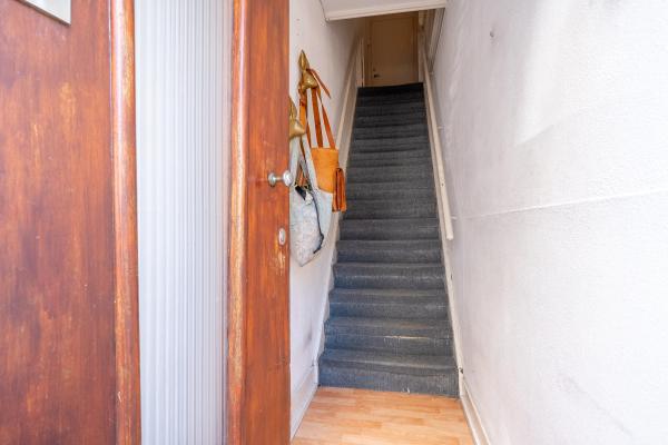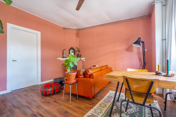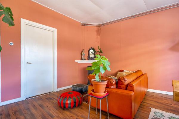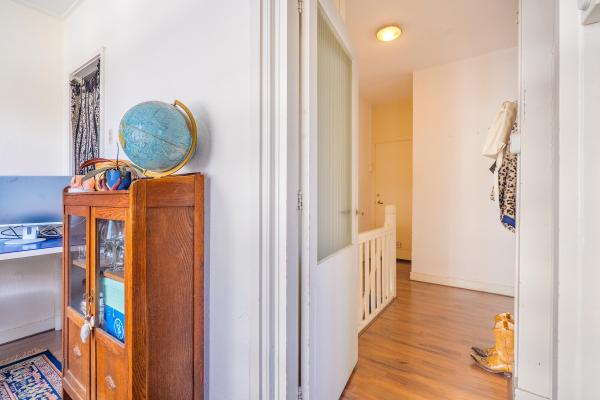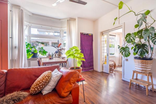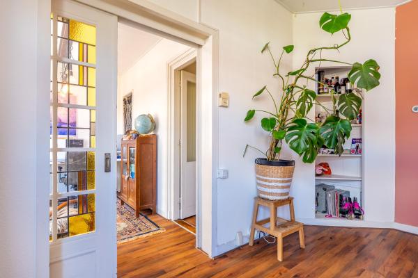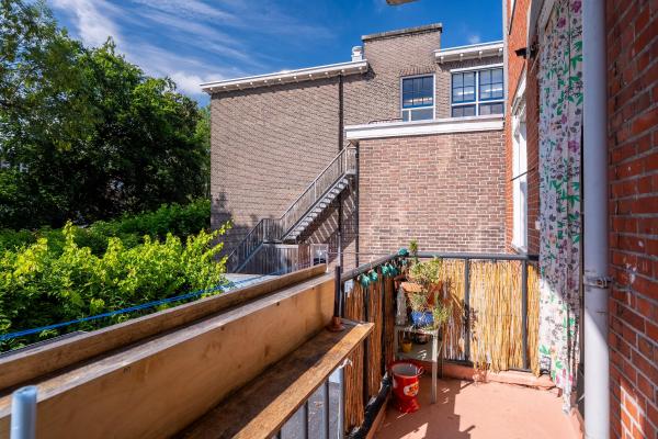 Deze leuke bovenwoning met diverse sfeervolle details bevindt zich op de eerste verdieping en heeft een speelse indeling. Via de opgang komt u op de overloop, die toegang biedt tot de gezellige woonkamer met erker. Vanuit de woonkamer bereikt u via een fraaie schuifdeur een werk- of slaapkamer. De dichte keuken geeft eveneens toegang tot het balkon. Daarnaast is er nog een tweede slaapkamer en een badkamer aanwezig. Het balkon aan de achterzijde is gesitueerd op het zuiden en vormt daarmee een heerlijke plek om van de buitenlucht te genieten. Vanaf hier heeft u uitzicht op het groen en de omgeving.