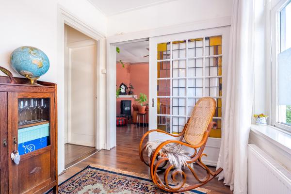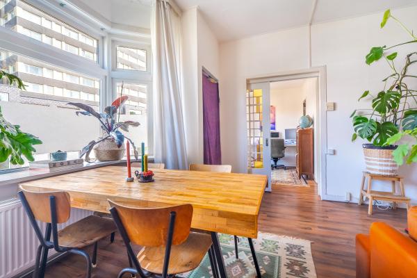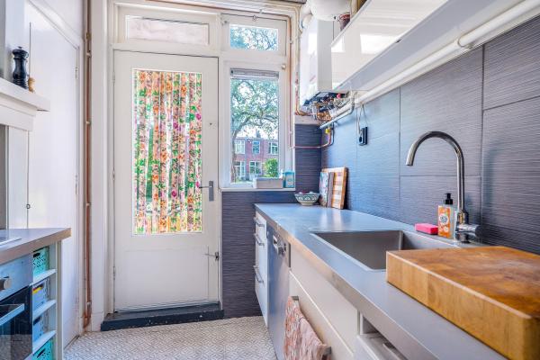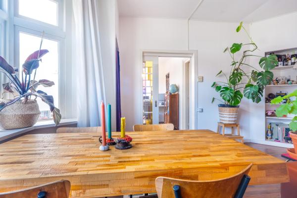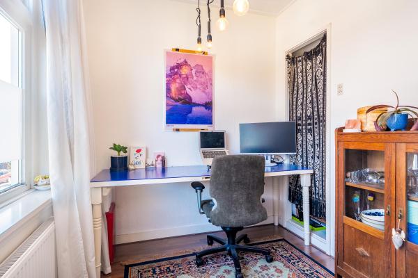 Op een prachtige locatie in de populaire Zeeheldenwijk, tussen het Noorderplantsoen en het Stadspark gelegen jaren'30 3-kamerappartement met balkon op het zuiden.Deze leuke bovenwoning met diverse sfeervolle details bevindt zich op de eerste verdieping en heeft een speelse indeling. Via de opgang komt u op de overloop, die toegang biedt tot de gezellige woonkamer met erker. Vanuit de woonkamer bereikt u via een fraaie schuifdeur een werk- of slaapkamer. De dichte keuken geeft eveneens toegang tot het balkon. Daarnaast is er nog een tweede slaapkamer en een badkamer aanwezig. Het balkon aan de achterzijde is gesitueerd op het zuiden en vormt daarmee een heerlijke plek om van de buitenlucht te genieten. Vanaf hier heeft u uitzicht op het groen en de omgeving.