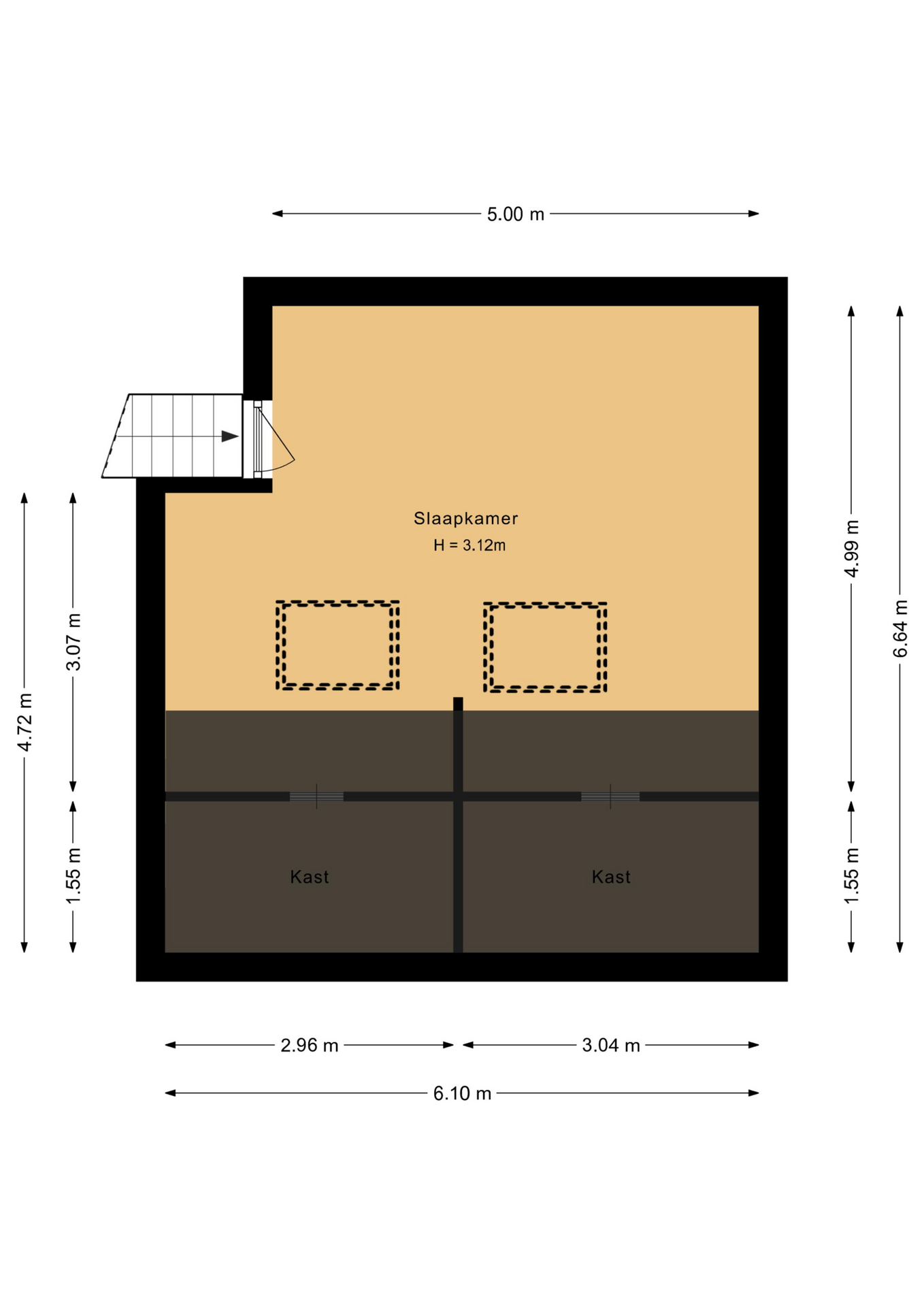 Ruime kamer met plek voor een comfortabele werkruimte / extra zithoek en een ruime lichte 5e slaapkamer, grote zolderberging.