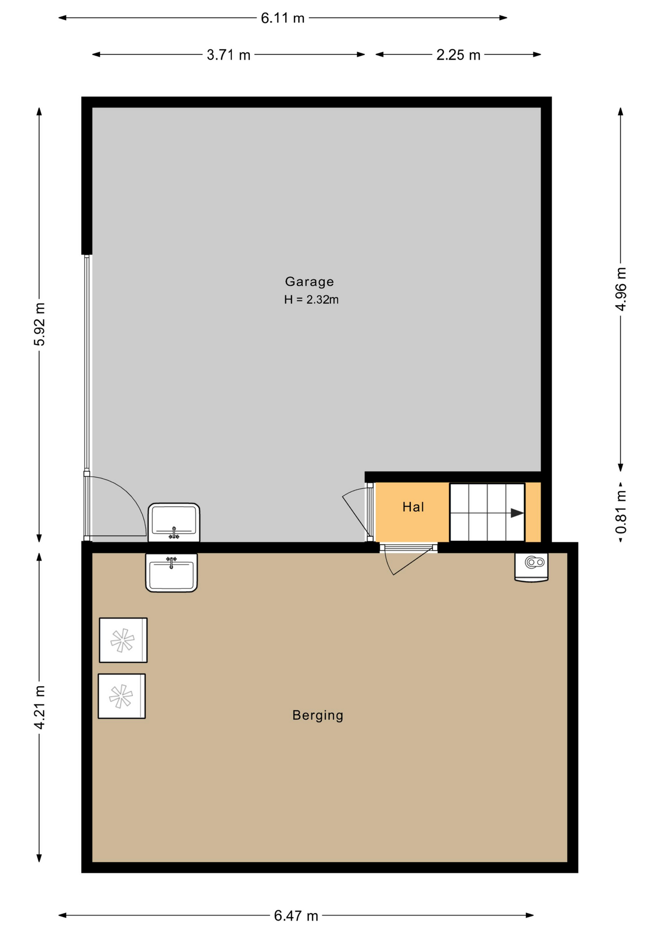 Inpandige garage, bergruimte.