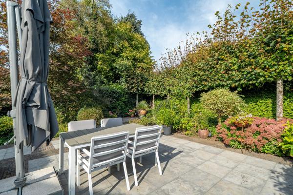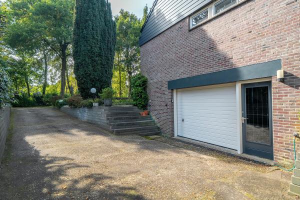 De woning, biedt een royaal en speels woonoppervlak verdeelt over de verschillende verdiepingen. Ruime hal met toilet en garderobe nis en meterkast. L-vormige woonkamer met afgesloten vide, open haard (gas) en schuifdeuren naar de tuin en naar het overdekte achterterras. Afgesloten keuken met inbouwapparatuur en eethoek en toegang tot de provisie kelder. Bijkeuken met aansluiting voor de wasmachine en droger. Op de eerste verdieping bevinden zich vier slaapkamers waarvan één met badkamer en suite met ligbad/douche en wastafel. Op de overloop een tweede badkamer met douche, toilet en wastafel. Op de tweede verdieping is een ruime lichte werk/hobby kamer met toegang tot de vide boven de zitkamer en toegang tot de grote bergzolder. Op deze verdieping bevindt zich ook een grote vijfde slaapkamer. In het souterrain bevindt zich de garage met elektrisch bedienbare deur en een extra ruimte geschikt voor diverse doeleinden. Rondom de woning ligt een fraai aangelegde tuin met diverse zitplekken, deels overdekt, waar u in alle rust en privacy kunt genieten van het buitenleven.