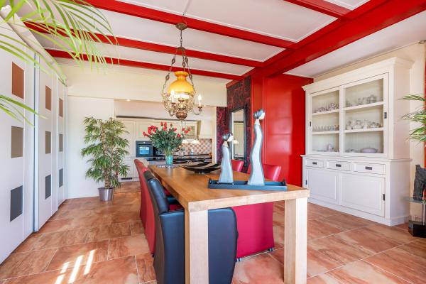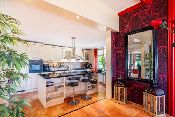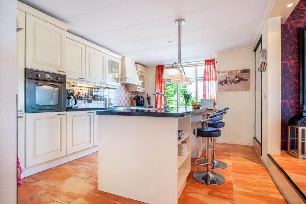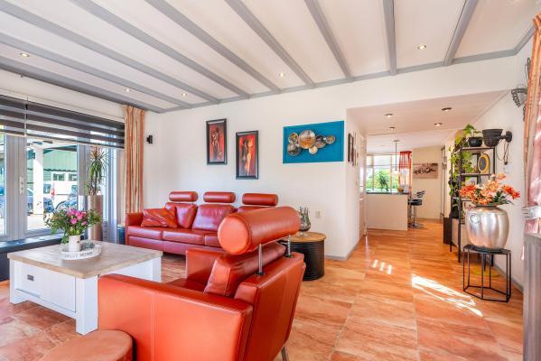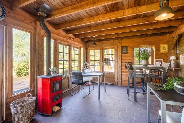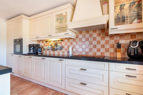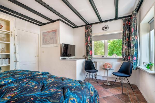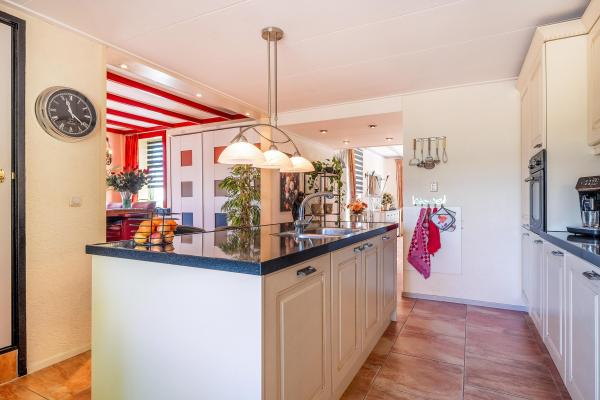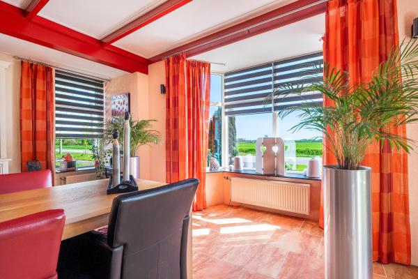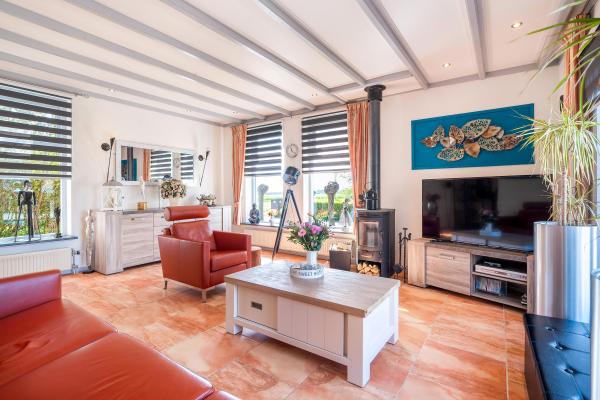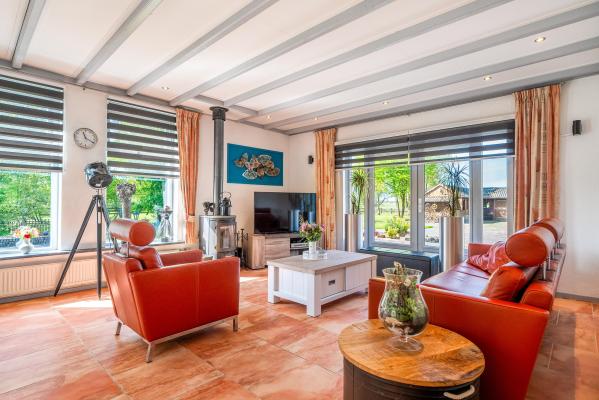Achter de charmante gevel van dit woonhuis gaat meer schuil dan u in eerste instantie zou vermoeden. Door de jaren heen is het huis grondig verbouwd en uitgebouwd, met als resultaat een verrassend royaal woonoppervlak van maar liefst 220 m². Een woning die ruimte biedt voor het hele gezin én volop mogelijkheden voor werken aan huis, hobby's of mantelzorg. Bij binnenkomst wordt u verwelkomd in een lichte en ruime woonkamer, waar de sfeervolle houtkachel direct de aandacht trekt. Vanuit hier kijkt u vrij uit over de omliggende velden – een prachtig uitzicht dat nooit verveelt. De open keuken en het gezellige eetgedeelte maken deze leefruimte compleet en nodigen uit tot lange avonden tafelen. Op de begane grond vindt u daarnaast een slaapkamer en een badkamer, ideaal voor wie gelijkvloers wil wonen of gasten wil ontvangen. De bovenverdieping biedt nog eens vier goed bemeten slaapkamers en een tweede badkamer, wat deze woning uitermate geschikt maakt voor een groter gezin of logées. Achter het huis bevindt zich een vrijstaand bijgebouw met eigen woonkamer en keuken. Deze ruimte is perfect in te zetten als atelier, thuiskantoor of zelfstandige woonruimte voor een inwonend kind of ouder. Daarnaast is er een grote, volledig geïsoleerde garage met zolderverdieping – ideaal voor het stallen van meerdere auto's, het uitoefenen van een ruimtevragende hobby of als extra opslagruimte. Aan de voorzijde kijkt u uit over uitgestrekte weilanden, terwijl de achterzijde volledige beschutting en uitzicht op het eigen perceel biedt. De tuin rondom de woning is een oase van rust. U vindt er een fraaie vijver, een overdekt terras, een eigen stuk weiland en vooral veel ruimte en privacy.