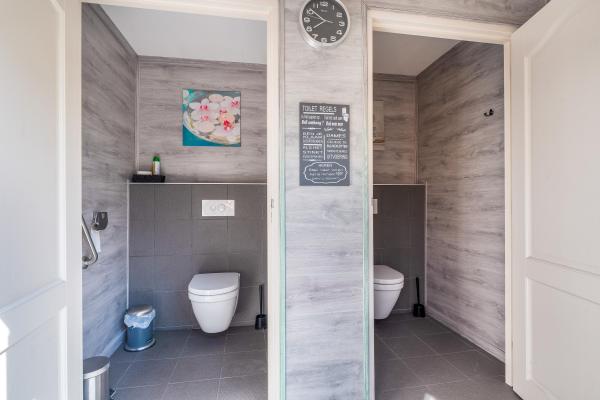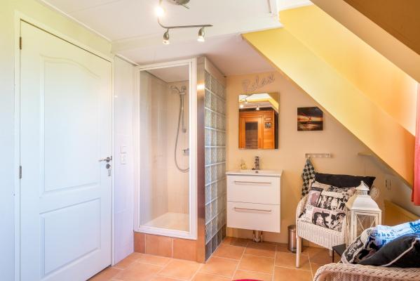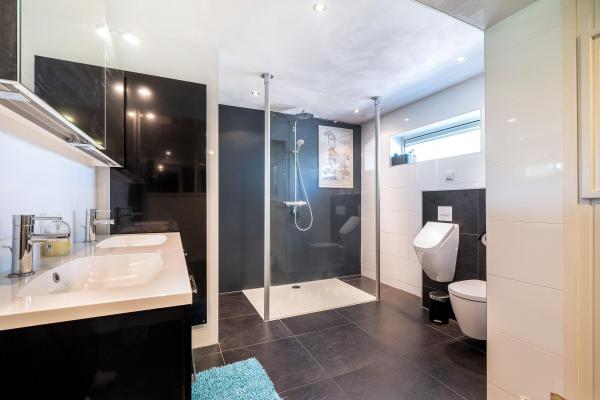 - Toilet, Urinoir, Dubbele Wastafel, Wastafelmeubel, Inloopdouche, Douche, Sauna