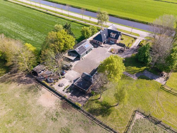 In het prachtige Groningse buitengebied, nabij uitgestrekte natuur- en vogelgebieden gelegen royale vrijstaande woning met bijgebouw en grote, geïsoleerde garage met verdieping.