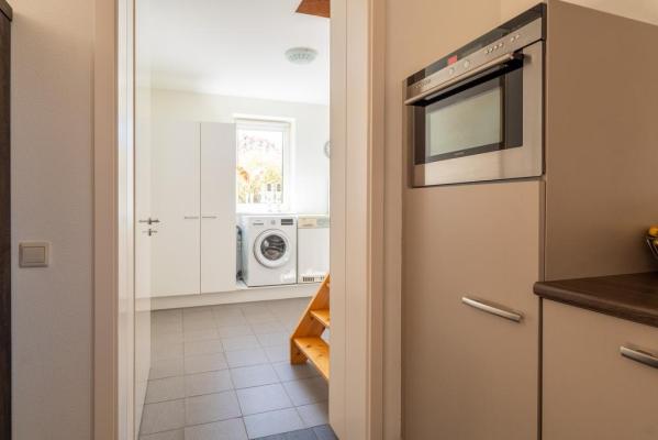 Entree/hal met trapopgang, wandcloset met fonteintje, L-vormige living met openslaande deuren naar de tuin en een open keuken voorzien van diverse inbouwapparatuur, bijkeuken met witgoedaansluiting en toegang tot de tuin.