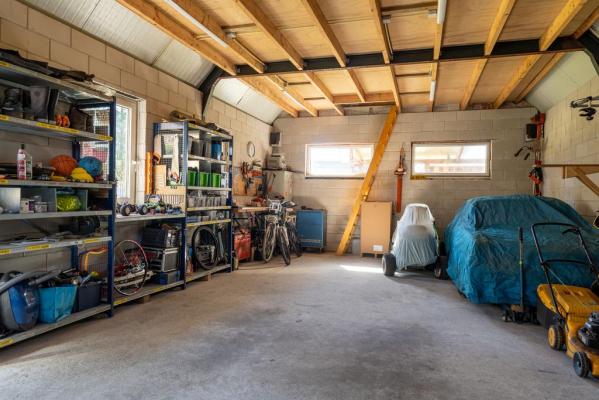 Vrijstaande schuur van ca. 60 m² en een inhoud van 250 m³, geïsoleerd incl. water en (kracht)stroom