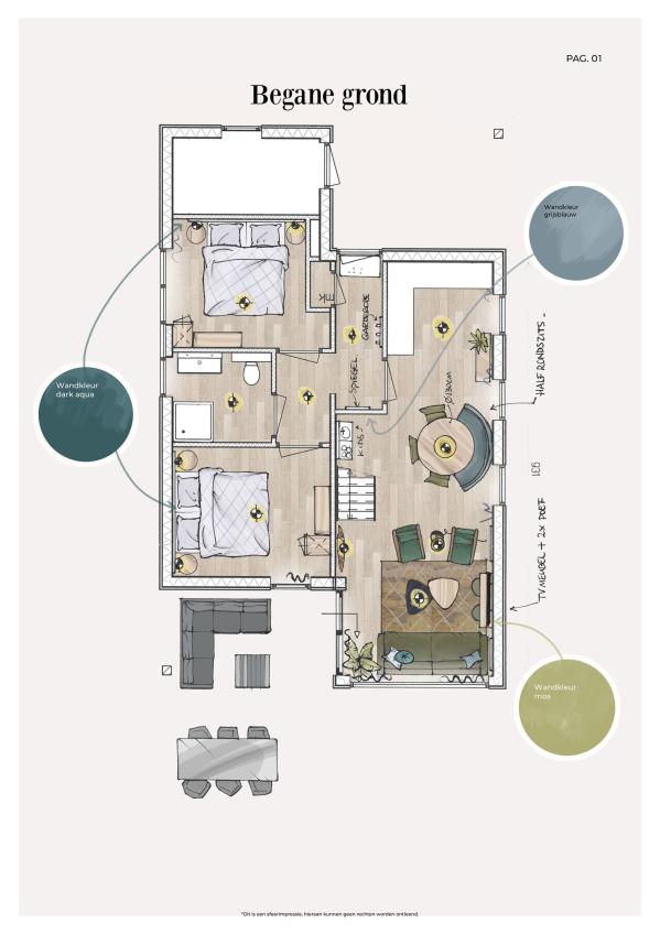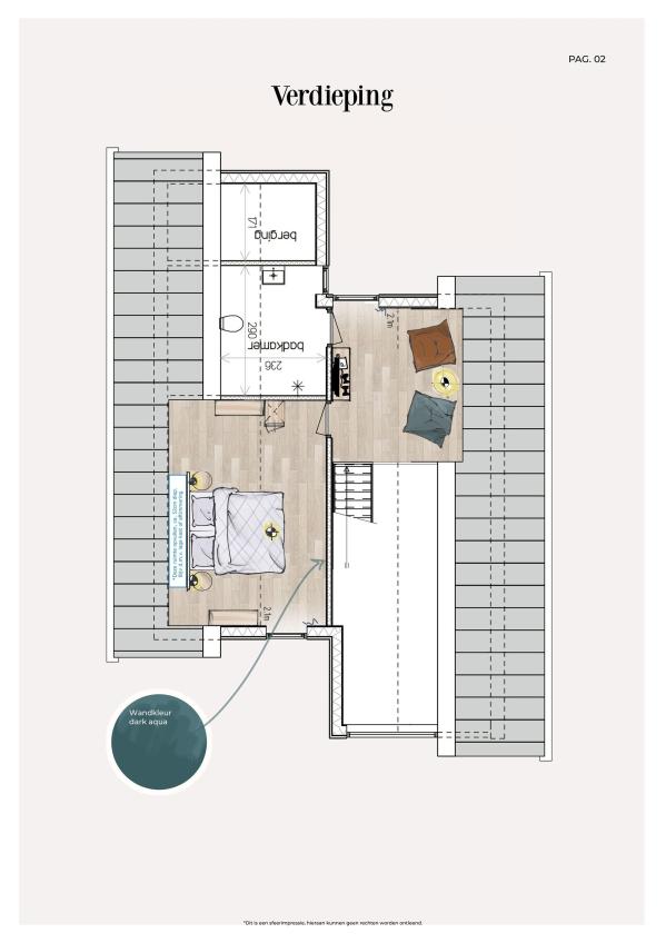 Om een indruk te geven van de mogelijkheden qua inrichting en afwerking, zijn er foto's gebruikt van een vergelijkbare, reeds ingerichte woning nr 114.