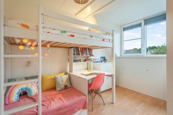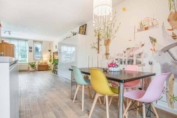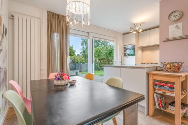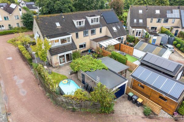Deze gezinswoning uit 1991 is de afgelopen jaren met veel smaak gemoderniseerd. Zo zijn de keuken en badkamer vernieuwd en is er een royale dakkapel geplaatst over de volledige breedte van de eerste verdieping. Ook zijn de kozijnen vervangen voor kunststof kozijnen met isolatieglas! De indeling is praktisch en eigentijds: een lichte L-vormige living met schuifpui naar de tuin, een moderne open keuken met spoeleiland, drie slaapkamers en een moderne badkamer op de eerste verdieping, en een ruime vierde slaapkamer op de tweede verdieping. Buiten geniet u van een tuin rondom de woning, met de hoofdtuin aan de achterzijde. Hier vindt u een fraai, deels overdekt terras en toegang tot de extra brede garage. Dankzij de gunstige hoekligging en de vrije ligging van de tuin ervaart u optimale privacy.